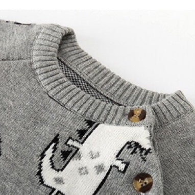 Baby Dinosaur & Pineapple Pattern Shoulder Button Design Knitting Romper Jumpsuit