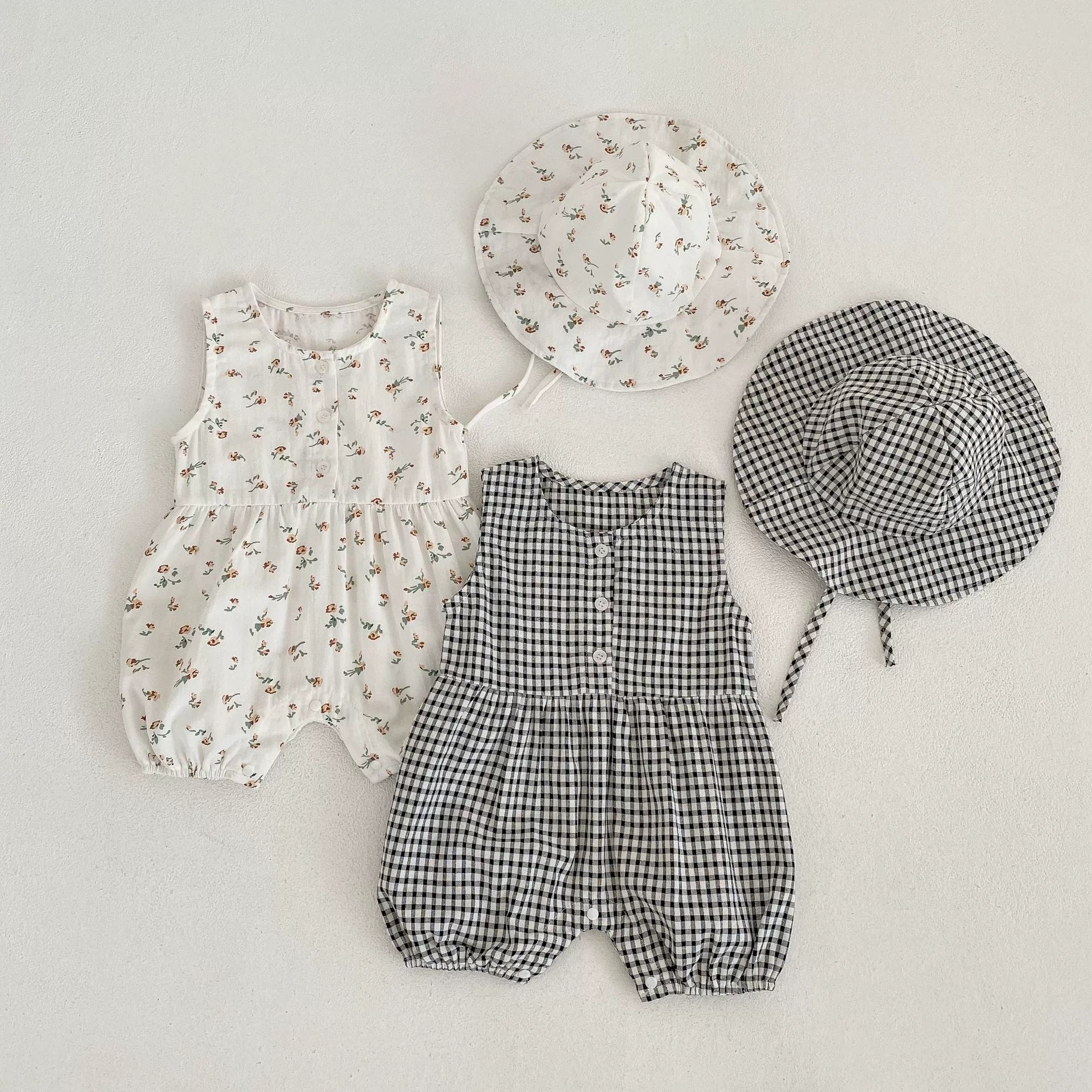 Keep your little one cool and adorable this summer with these sleeveless rompers featuring charming floral and plaid patterns. Designed for comfort and easy movement, they’re perfect for sunny days filled with play and exploration. Dress your baby girl in style and let her enjoy the season with a playful, fresh look!